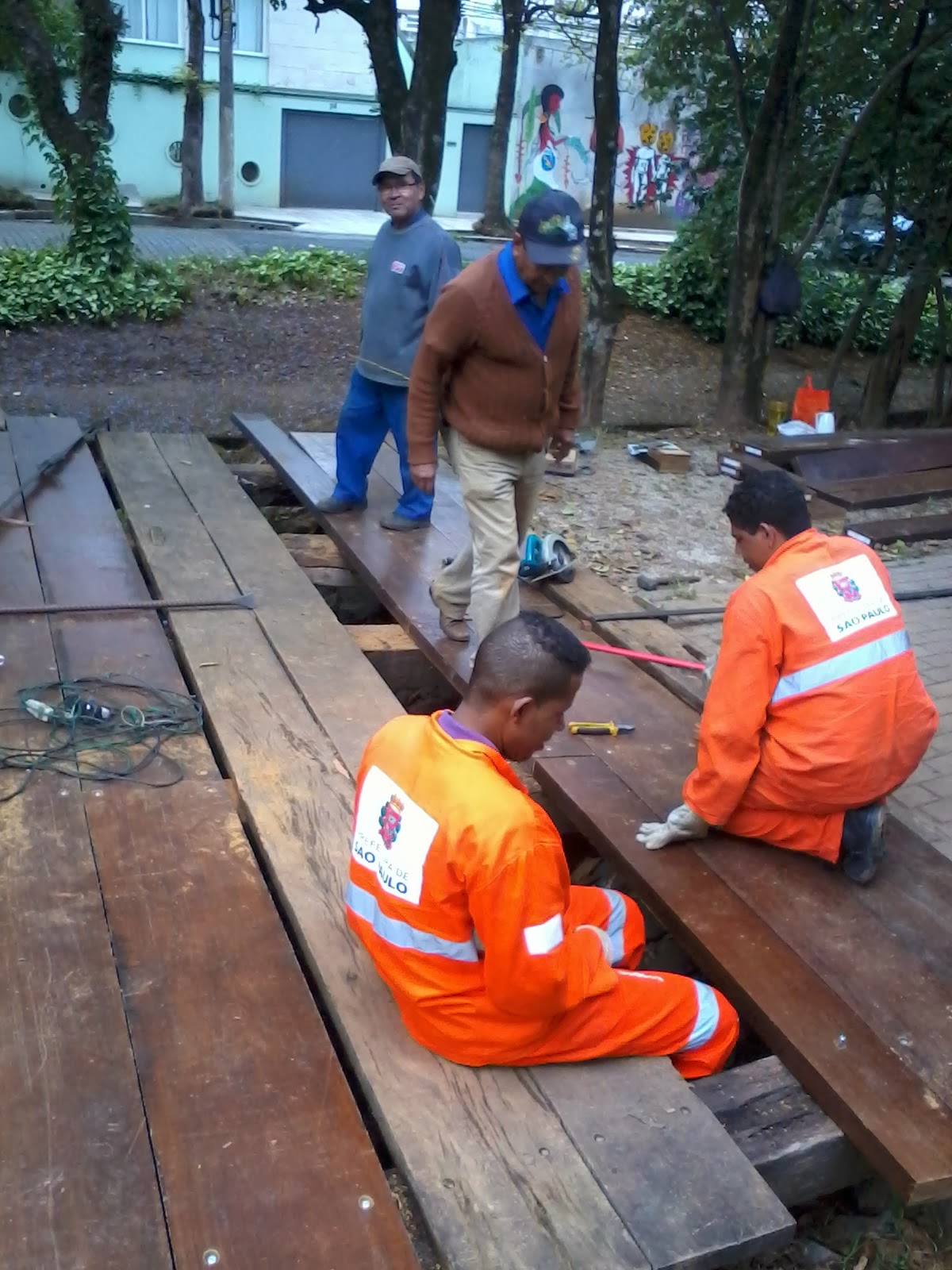Hoje podemos dizer que já temos 6 ou 7 mãos, pois além da Prefeitura, IdeaZarvos, AmataBrasil, Montana Química e Comitê Gestor da Praça, temos agora os doadores de eletricidade, pois as pontes estão sendo feitas com eletricidade doada por moradores do entorno da praça para agilizar a reforma.